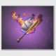 Baseboll på eld. Kraftfull och dynamisk design med en strålande vit baseboll med träffande rött stygn i mitten, omgiven av en intensiv, skarp lila bakgrund. Basbollen verkar vara omgiven av de blazande flammor som dansar i en blandning av orange, gult och blått. Dessa vibrerande färg ge är en explosiv energikälla och gör omedelbart tittaren uppmärksam på detta. Lågorna verkar inte bara sprida baseboll och fladdermus, utan skapar också en fullt av handling och intensitet. De symboliserar basebollidrottens passion och tävlingsanda.