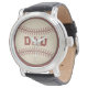 En vintage-inspirerad baseboll-dekor pryder detta stilrena ur. Designen är skapad från original konst.