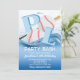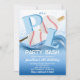 Dyk in i roligheten med denna kreativa och iögonfallande baseball-pool fest födelsedagsinbjudan! Med en lekfull design med en baseboll, slagträ och feta "PL" bokstäver som stänker i vattnet, kombinerar denna inbjudan perfekt två favoritaktiviteter på sommaren — baseboll och simning.