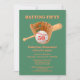 Fira femtio år av kul och vänskap med denna retroinbjudan för baseballtematisk födelsedagsfest "Batting Fifty". En vintage-design med basebollhandske, boll och slagträ tar centerplats på en mjuk grön bakgrund, med siffran 50 stolt visad inuti bollen. Texten ”Batting Fifty” och ”Still in the Game” ger en lekfull nick till ett liv fullt av fantastiska innings. Baksidan upprepar den nostalgiska baseballdesignen med frasen ”Friends, Food, Play Ball” — den perfekta kallelsen att gå med i firandet. Perfekt för alla basebollfantaster eller sporttematiska fester.