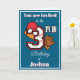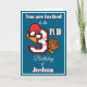 Den här tredje födelsedagsinbjudan innehåller fullständig anpassade text inuti och ut. Baskebollteman florerar med hjälm, boll siffror och handskas. De sportetiska siffrorna är för roligt. Utformningsfunktioner sprängs av rött som hamnar mot den blå bakgrunden. Det här kortet är redot för din anpassning. Andra siffror finns i min butik.