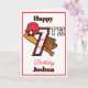 Det här sjunde födelsedagskortet innehåller helt anpassade text inuti och ut. Baskebollteman florerar med hjälm, boll siffror och handskas. De sportetiska siffrorna är för roligt. Utformningsfunktioner sprängs av rött som hamnar mot den vita bakgrunden. Det här kortet är redot för din anpassning. Andra siffror finns i min butik.