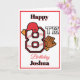Det åttonde födelsedagskortet innehåller helt anpassade text inuti och ut. Baskebollteman florerar med hjälm, boll siffror och handskas. De sportetiska siffrorna är för roligt. Utformningsfunktioner sprängs av rött som hamnar mot den vita bakgrunden. Det här kortet är redot för din anpassning. Andra siffror finns i min butik.