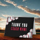 Tackkort till basebolltränaren. Detta anpassningsbara kort med basebollar låter dig visa tacksamhet för den hängivenhet, ledarskap och motivation din tränare tillhandahåller. Personifiera med din tränares namn och tackmeddelande inuti kortet. Ett bra kort för en tränare!