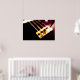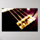 Det ursprungliga fotografiet på denna abstrakt Poster på basen av en basgitarr, den del där strängarna börjar och stiga upp ända fram till nacke. Fotofärgningen i förslutningen görs i rik, djupt varmt med ett gyllene ljus på metall-plattan, strängar, skruvar och vår.