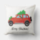 Basenji Hund Driva en rödbil med Julgran Kudde
