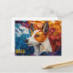 Det här är en abstrakt färglös porträtt av en hund av en Baskenji-ras i pappra djuphavsgående konst stil. Det är ett underbart vykort för hundälskare och baskenjägare.