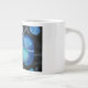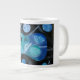 Ett ursprungligt mellanrum av Susan L. Marsh med en basguitarform med blå och grönt planeter mot en svart bakgrund.