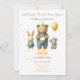 Fira en speciell dag med vårt fantastiska födelsedagsfest inbjudan-kort, med en fin björn med en trumma, en söt kanin med en kaka och en glad mus med en ballong. Perfekt för att lägga till lite stollig och charm till ditt barns födelsedag. Gör ditt barns födelsedag oförglömligt med det här trevliga kortet för inbjudan till anpassade. Ordna nu och börja planera perfekten party!