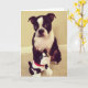 Paloma den Boston terrieren som poserar med en välfylld Boston Terrierplysch som hon önskade att hålla för hon själv.