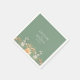Söt, modern och enkel papper party-napkin har besprutning av grund-blommigt med vattenfärgsvit och persikoblommor från färg och asorterad sage och eukalyptus grönt löv på trendigets grundläggande grönt. Anpassa parets datum namn och bröllop i vitt, modernt typsnitt