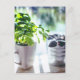 Ett foto av Basil-gröntens växt i ett vitt keramiskt kopp.