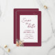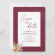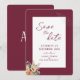 Burgundy röd "spara datumet" för bröllop, med vattenfärgade aprikoser och trädgårdslöv. En enkel, men elegant contemporary botanisk design inspirerad av boho vintage stil, med monogram på baksidan.