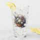 Detta är ett glas eller en tumör som är 16 oz eller en punkt. Det har en design av ett basket fyllt med olika typer av blommor.