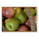 Färg-fotografi av en basket av grönt och röda äpplen.