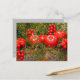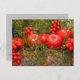 En basket fylld till överfyllnad med ljusröd frukt kapslad i grönt grenar ger dig Julhälsningar på ett färgstarkt vykort.