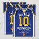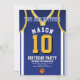 Högtidlighålla er speciella dag med Basketball Jersey Birthday-inbjudan, designad för basketboll fläkt! Inbjudan har en djärv jersey-design som inspireras av den ikoniska lilan och guld färg, och är perfekt för barn, tonåringar och vuxnor som kärlekar spelet. Anpassa den enkelt med ditt namn, din ålder, information om party och till och med ditt teamnummer i bara några få klick. Finns i många-storlekar, som är tryckt på förstklassig kvalitet pappert med ett stort antal avsluta som passar din stil. Välj mellan olika pappra typer, snabb utskrift och snabbleverans så att inbjudningarna kommer i tid. Oavsett om det är för ett idrottstemat party eller ett Lakers fläkt firande, så är inbjudan det här perfekten sättet att få dina gäster upphetsade.