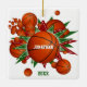 Den här basketbollens tematiska keramiska prydnadsföremål har en "explosion" av basketbollar i varierande storlekar och festivt rött, grönt och vita stjärnformer - anpassa med spelarens eller fläkt namn och år fram och tillbaka - katz_d_zynes