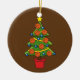 Ett exempel på ett Julgran med gult band, stor stjärna, blåhängande bollar och bollar. Denna formgivning görs för julhelg älskare och sport älskare.