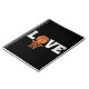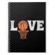 Retro stil grunge "Kärlek"-textdesign med orange basketboll och dekoration för basketboll