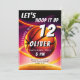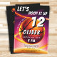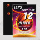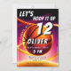 Basketball Korg Sport Födelsedagsinbjudan. Denna moderna design har texten "Let's hoop it up" och en basketboll på en livlig och levande bakgrund. Baskettemat gör det perfekt för en basketfans födelsedag. Lägg till din information.