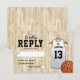 Svarskort från pub mitzvah party med en basketbollsbakgrund, en vit jersey med barn namn, nummer, stjärnan av davande och en osa som är enkel att anpassa.