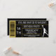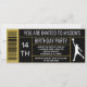 Basketball födelsedagsinbjudan med basketspelare på en svart och guldfärgad sko box etikett bakgrund. Lägg bara till dina evenemangsuppgifter.