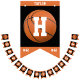 Svarta och orange grattis på födelsedagen basketboll buntar flagga för sportfantaster/manar och pojkar. Anpassa texten med spelare eller team namn och nummer.