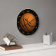 Underbar utformning för väggen. Boll färg står mot en svart bakgrund runt en basket. På eller utanför domstol - det gör en underbar klocka