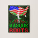 Karta i USA med flaggor i Baskien Land och Amerika blandades in i USA med texten Baskiska rötter i rött och grönt.