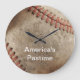 Baskebollur med foto av en basebollklocka på klockan ansikte och ord Amerikas Pastime kan du personalisera om du vill ha för manar eller tonårspojkar i den här sportmurens dekorklockdesign. Perfektens gåva till baseball fläkt eller fanatisk.