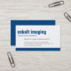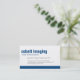 Typ är kung på det här affärskortet. Ditt företag eller det egna namn är placerat i stor sans serif-typ som spelas upp utanför färg pub på kortets bas. All text är anpassade tillsammans med webbplatsen eller annan relevant information som skrivs ut på motsatt mot motsvarande mörk blått. Ett mångsidigt kort som kan användas för en konsult, hemmabruk, detaljhandel eller någon professionell. Finns i alternativ färg med matchande produkter. com