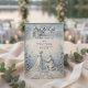 Meddela din formella förlovning med en romantisk, neoklassisk estetik med en dammig blå och krämfärgad palett och elegant formell kalligrafi. Denna design bygger på en strukturerad hierarki av klassisk serif och formell kalligrafi, med en ren visuell layout och balanserat avstånd. Konsten illustrerar en mycket detaljerad digital basreliefseffekt av en knäböjande man som friar till en kvinna i en flödande klänning mot ett klassiskt kupolformat kapell. Utförd i en sofistikerad palett av pudrig blå, skiffergrå och off-white, innehåller kompositionen en kullerstenstig, utspridda kronblad och en botanisk blomstergräns som härmar skuggor och höjdpunkter i karvsten. Detta är en platt tryckt bild med en fals