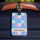 Do you like cute music theme luggage tags? This luggage tag has a pattern of bass clef symbols done in yellow, pink, blue, turquoise and purple. The text can be personalized to fit your needs.