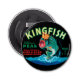 Denna vintage låda-märkning av en basfisk som bär krona på svart bakgrund kommer att glädja vilken vintage som helst älskare. Det är en reklam för KingFish Peas. Färg är mycket levande och vasst. Välj den här teckningen på produkten idag.