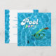 Inbjudan till anpassade för sommaren bassäng party med tydlig blå vatten i bassäng, snorkel och färgstark text. Anpassa den med din egen information eller anpassa den ytterligare om du behöver redigera layouten eller inbjudan storlekt.