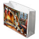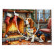 This cozy Christmas illustration showcases a lovable Basset Hound sitting beside a warm fireplace, wrapped in twinkling Christmas lights with festive stockings hanging above. The breed’s signature long ears and gentle expression add extra charm to this heartwarming holiday scene. Ideal for Basset Hound lovers, seasonal décor fans, and Zazzle shoppers searching for unique Christmas art featuring their favorite breed.
