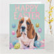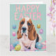 En livlig scen i Påsk med ett vackert hund mitt i en samling livliga Påskägg. Den lekande hund tillför charm till den festliga atmosfären, omgiven av en mängd färgstarka ägg som är förtrollade med vismliknande mönster.