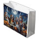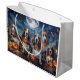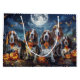 Släpp upp spookandan med den här eerie Halloween-designen med en hundar-förpackning under en mörk, månbelyst himmel, omgiven av flygande fladdermus och glödande pumpor. Perfekt för dem som kärlek en aning skrämmande roligt med sina hårigets vänner!
