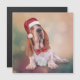 Basset Hound i den röda hatten på Jultomten