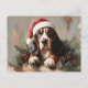 Basset Hound i Oljemålningen Santa Hat Vykort