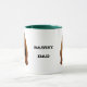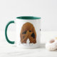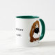 Bassetpappamuggen med en stor näsa beklär beskådar av en röseterrier på en sida av muggen, och deras förtjusande baksida avslutar beskådar tillbaka på andra sidan av muggen. Bakgrund färgar, och text kan ändras. Klicka precis på Customize som den knäppas.