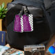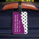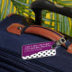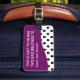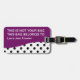 Klyftiga beställnings- bagagemärkre med svartvit polka dots och lilor betonar färg med den inte din ord "hänger lös". Designat för kvinnor eller flickor som du kan personifiera och låter dina stunder för bagagestativ ut du reser, på idrottshallen, eller du någonstans önskar att sätta en legitimationmärkre du kan skräddarsy.