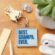 Bäst. Grampa. Aldrig. (blå) Fyrkantig Silverfärgad Nyckelring