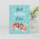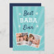 Fira en älskad Baba i Fars dag med den här coolan fotokortsdesignen som innehåller två favoritfoton av hans barnbarn med frasen "best Baba ever" i vitt och blått tecken på akvatisk bakgrund. Lägg till ett förtryckt anpassningsbar på baksidan.