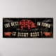 © Pela Studio / Vild Apple. Ett tecken på vintage om barber i svart, vitt och rött. Bilden säger: "Bästa BBQ i staden är Höger här!"