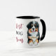 "Bästa hundmamma" står det i mitten på denna söta mugg. Bilden på varje sida är en bedårande bild av en Berner Sennenhund som erbjuder ett gyllene hjärta. Perfekt till mors dag eller hennes födelsedag! All text är anpassningsbar, så du kan även ändra den till Pappa till fars dag.