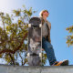 Stora gamla hund och unga kattunge är kompisar som ska åka på din skateboard!