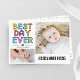 Gratulera till din lilla födelsekort med vår bästa dag någonsin. Det här charmerkortet visar två värdefulla bilder av ditt nyfödda på framsidan, kompletterade med lekfull typografi som avslöjar din baby namn och födelseinformation. Kortets baksida är adorberad med färgader med pastellregnbåge, vilket gör att detta speciella meddelande får en trevlig beröring. din bästa dags glädje med familj och vänner med denna förtjusande och personlig keepy.