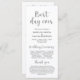 Modern Bröllop Ceremonisekort i 4 x 9 tum (lång) kort. Det är designat med rullans accenttecken som kan vara personlig med anpassningsbar/ personlig för din bröllopsfest, information om ceremonier, minnesanteckningar och tack för ditt budskap. Om du är tittar för andra programkortstyper och -storlekar, sök igenom vårt matchande programkortinsamlingsavsnitt.